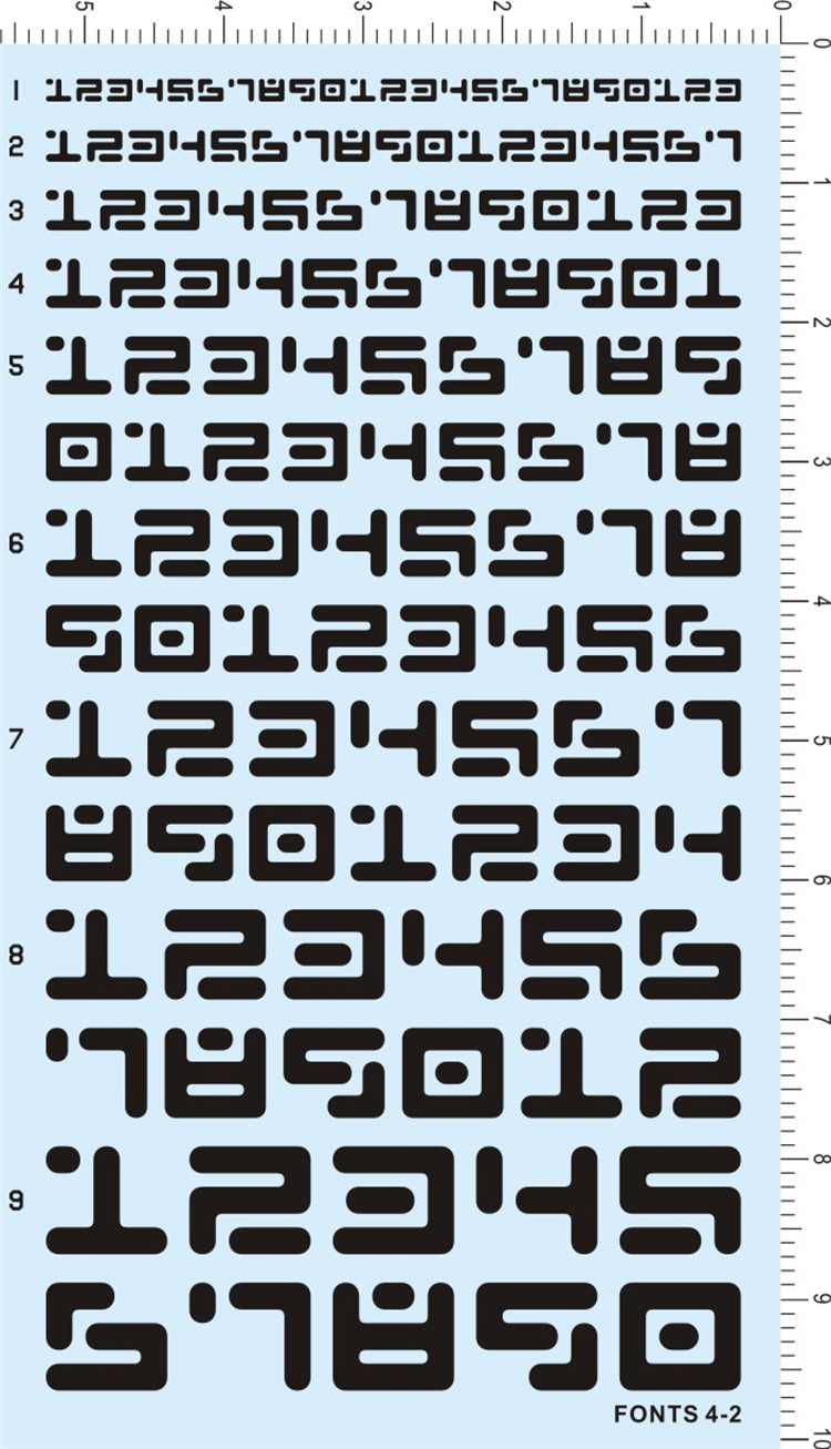 1 x Fonts 4-2 Number Water Slide Decal for different scale Model Kits Black/White