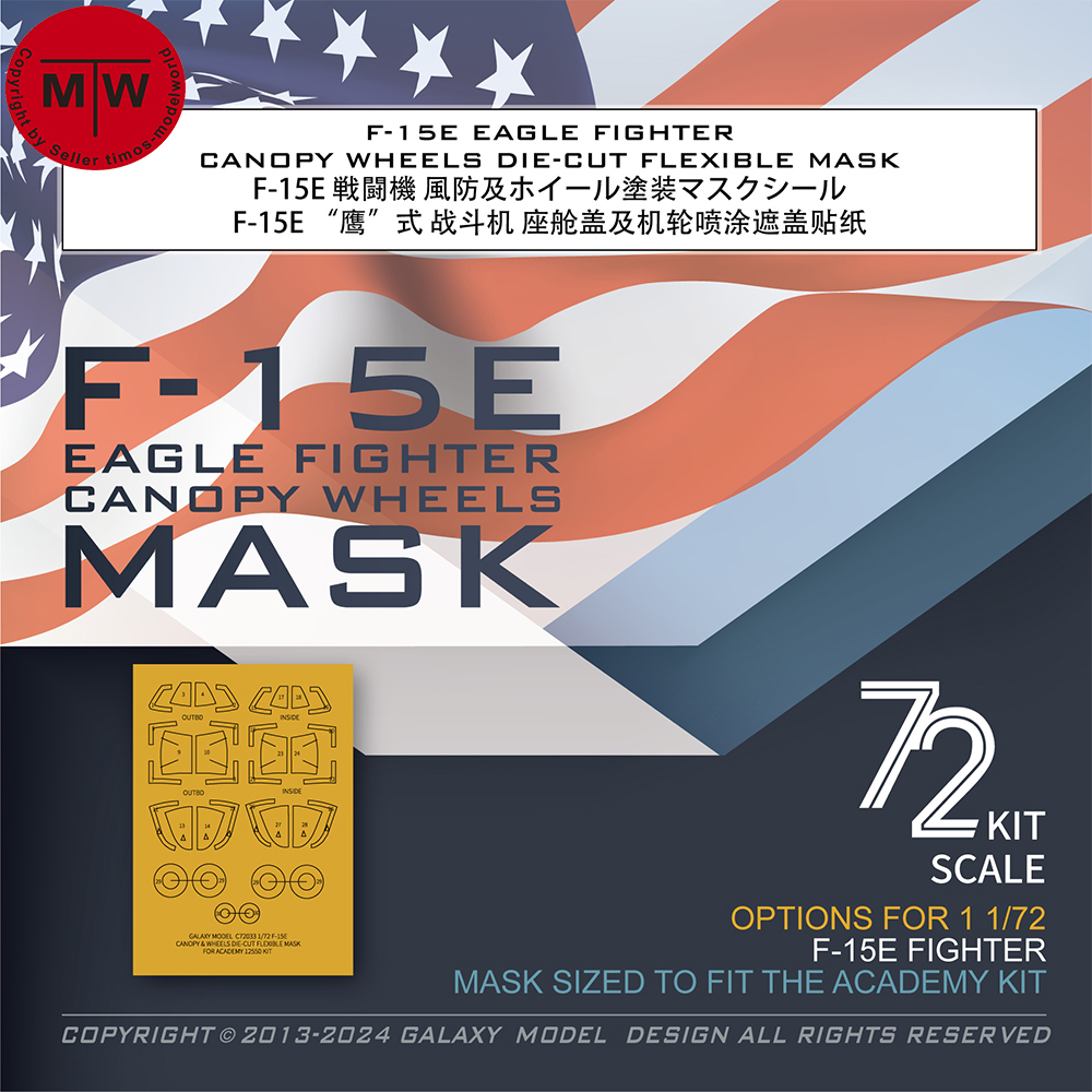 1 x 1/72 Scale F-15E Eagle Fighter Canopy Wheels Flexible Mask for Academy 12550 Model Kits C72033