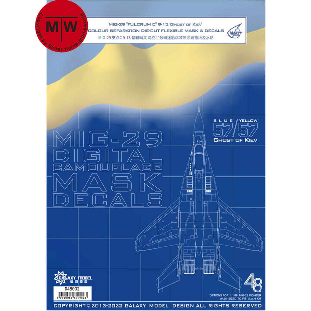 1 x 1/48 Scale MiG-29 Fulcrum C 9-13 Color Separation Mask & Decals for Great Wall Hobby L4813 Model Kit D48032