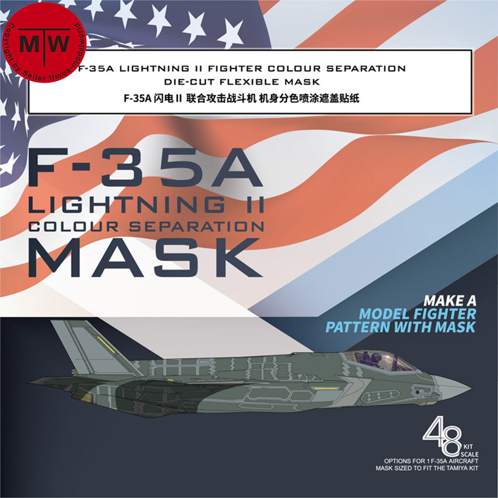 1 x 1/48 Scale F-35A Lighting II Fighter Color Separation Die-cut Flexible Mask for Tamiya 61124 Model D48045