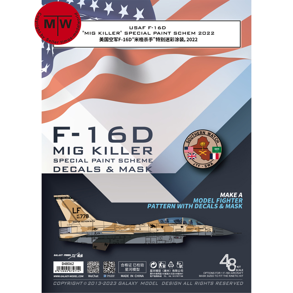 1 x 1/48 Scale F-16D Mig Killer Special Paint Schem 2022 Decals & Mask for Kinetic K48105 Model Kit D48062