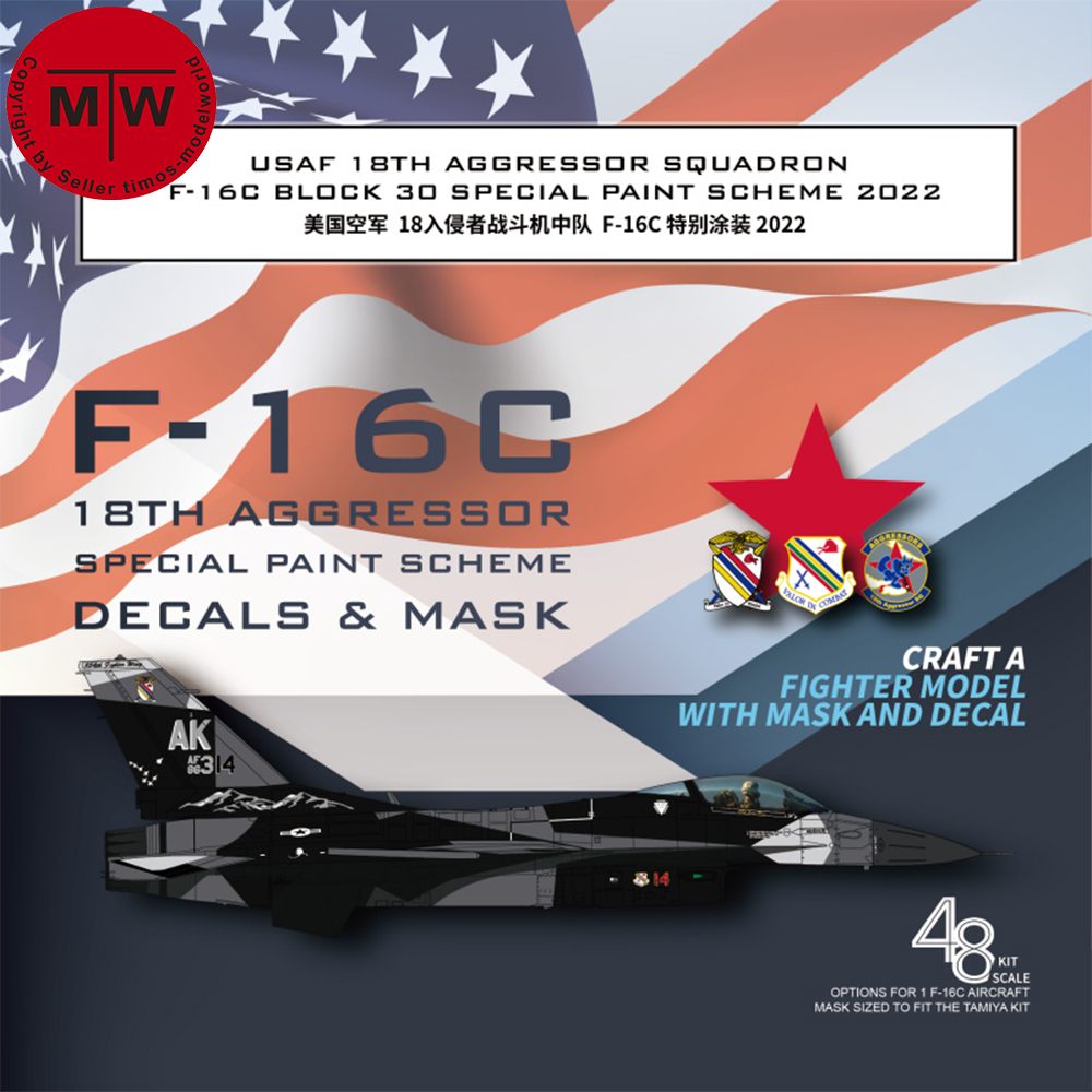 1 x 1/48 Scale F-16C 18th Aggressor Special Paint 2022 Decal & Mask for Tamiya 61106 Model D48071