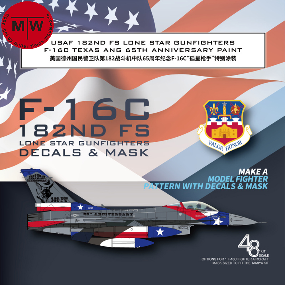 1 x 1/48 Scale F-16C USAF 182ND FS Lone Star Gunfighters Mask & Decal for Tamiya 61106 or Kinetic K48102 Model Kits D48093/D48094