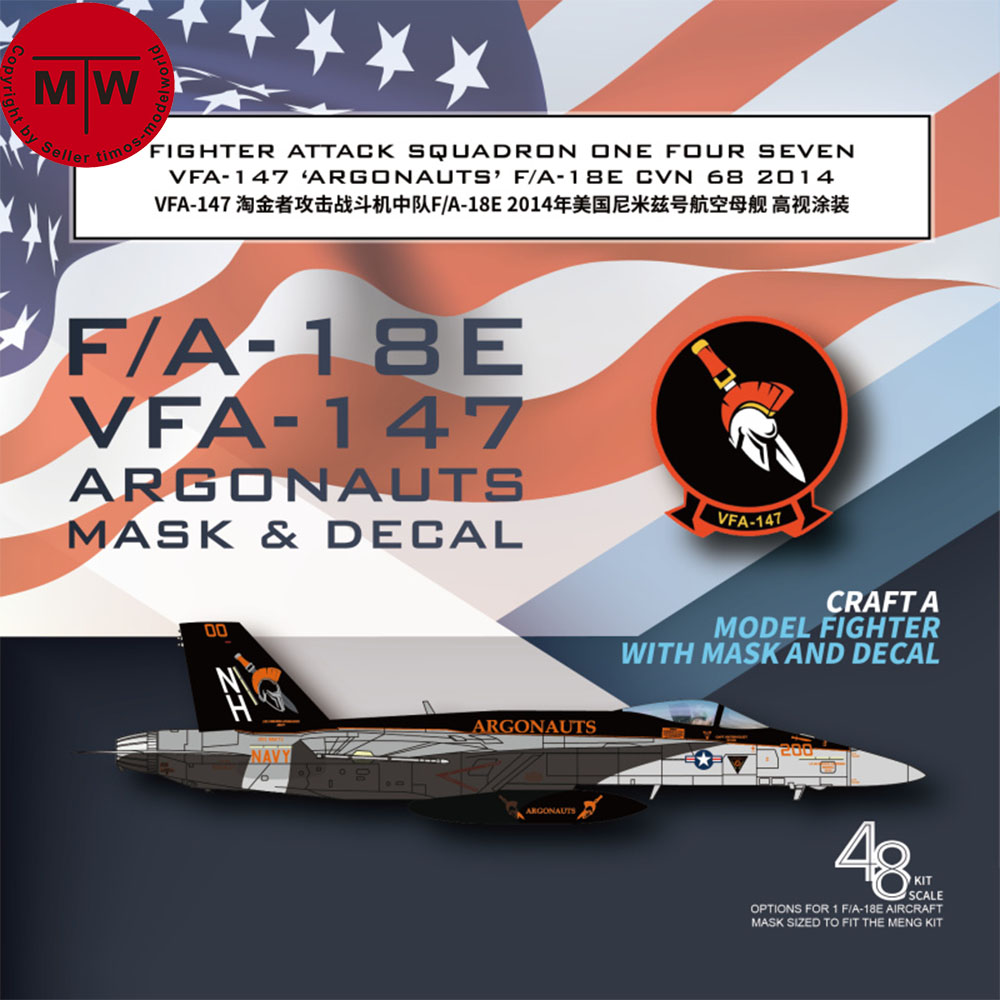 1 x 1/48 1/72 Scale F/A-18E VFA-147 Argonauts CVN 68 2014 Mask & Decal for Meng/Academy Model Kit G48043/G72043