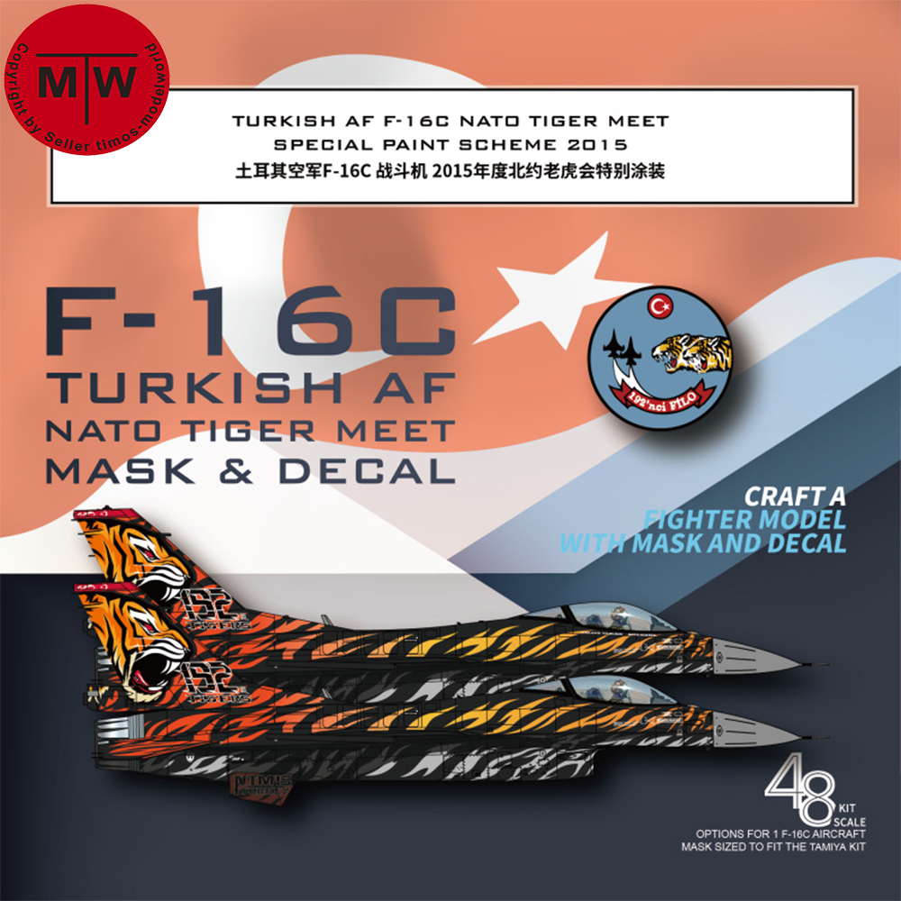 1 x 1/48 Scale Turkish F-16C Nato Tiger Meet Special Paint 2015 Mask & Decal for Tamiya 61106 or Kinetic K48102 Model Kits G48082/G48083