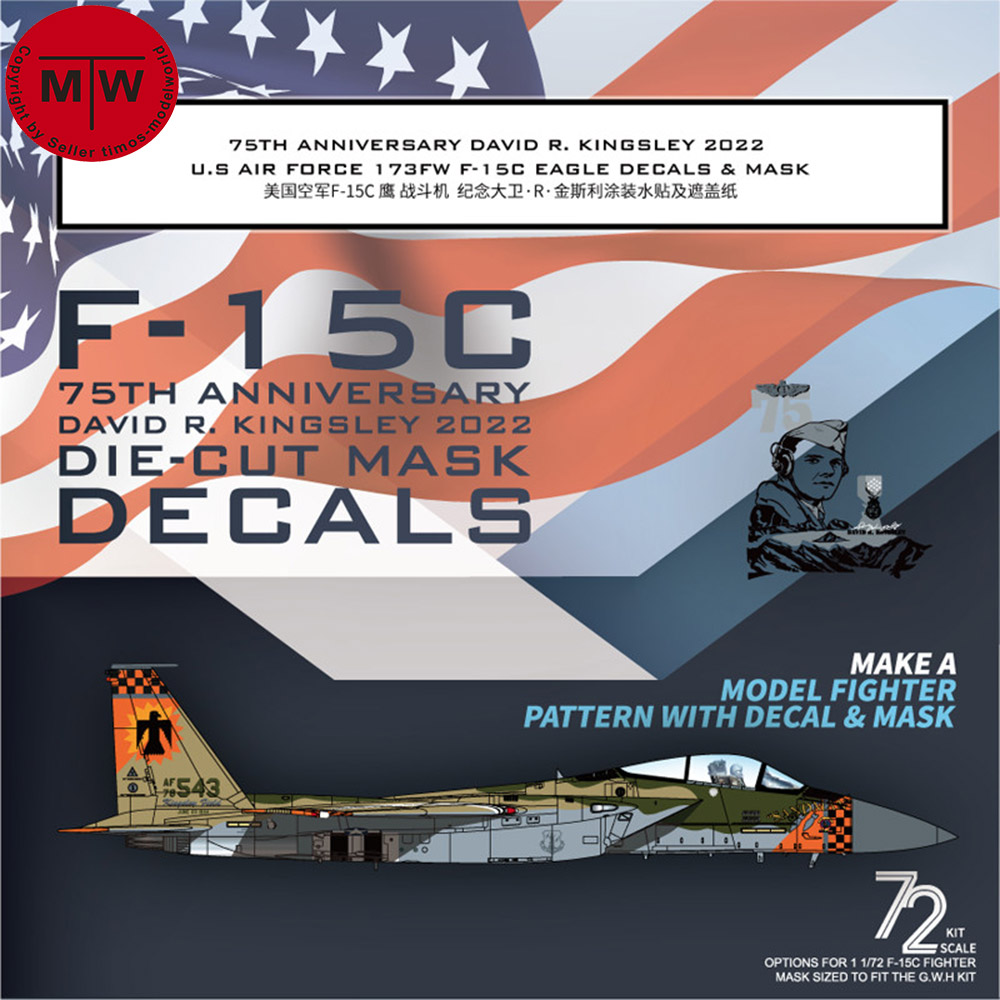 1 x 1/72 Scale 75TH ANNIVERSARY David R. Kingsley 2022 US Air Force F-15C Decal & Mask for Great Wall Hobby L7205 Model Kit G72051