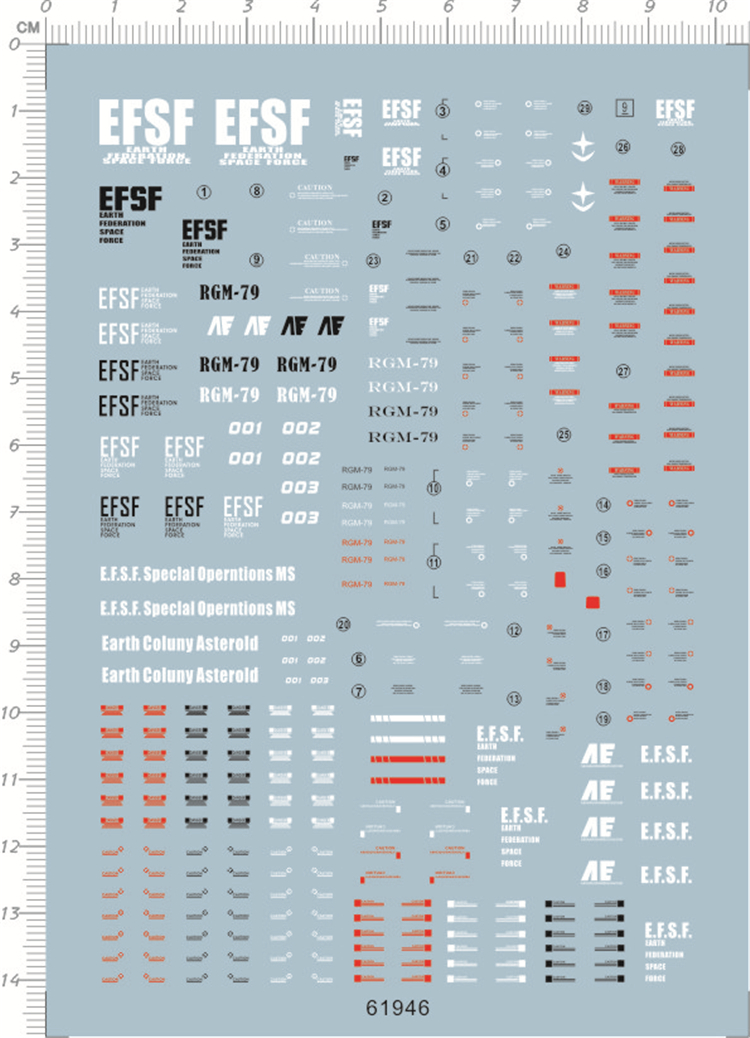 1 x HG GDM RGM-79 GM Decal for Model Kit 61946
