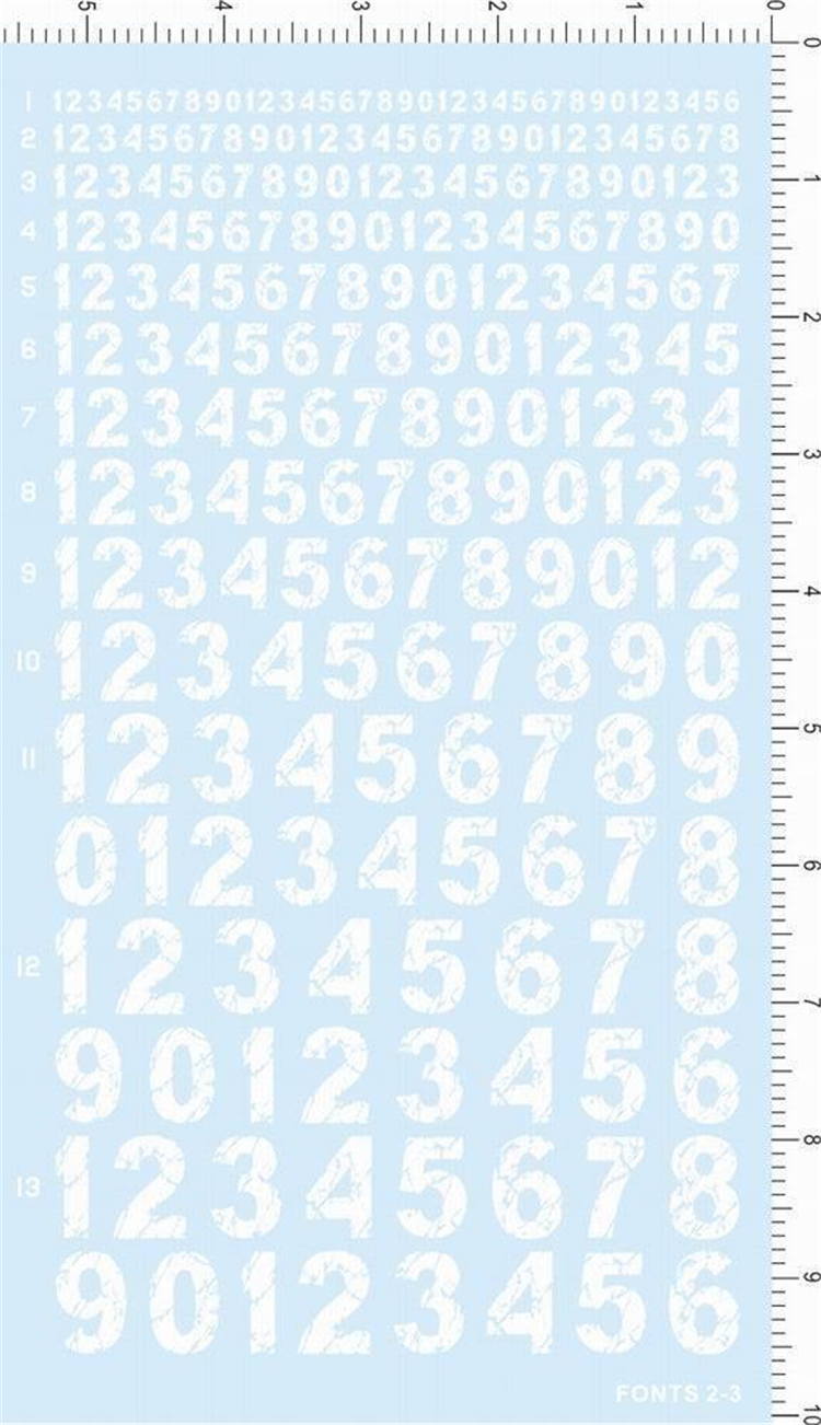 1 x Numbers Decal Fonts 2-3 for Different Scale Model Kit White