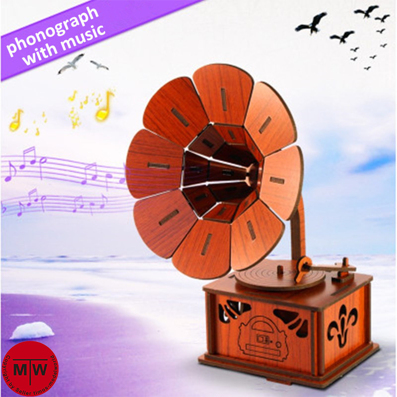 1 x 3D phonograph gramophone assembly model set (include music box)