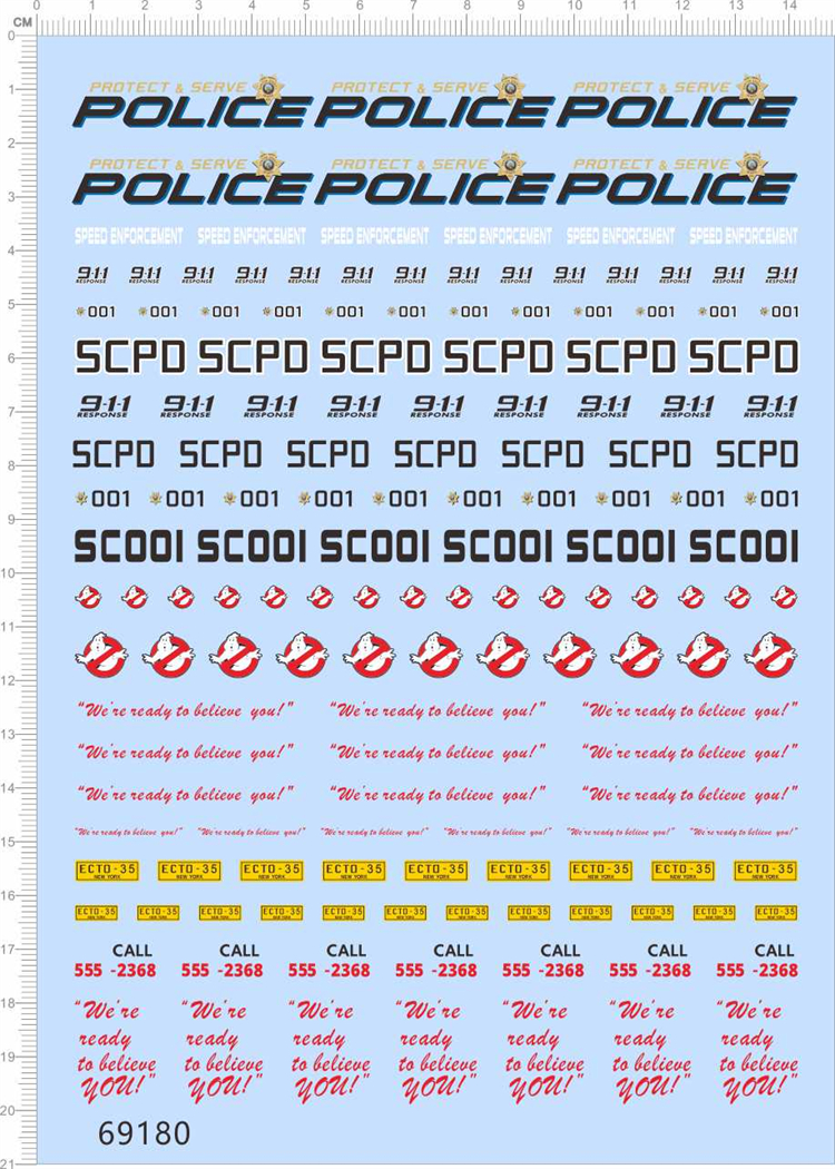 1 x Police 911 Ghostbusters Water Slide Decal for Car Model Kit 69180