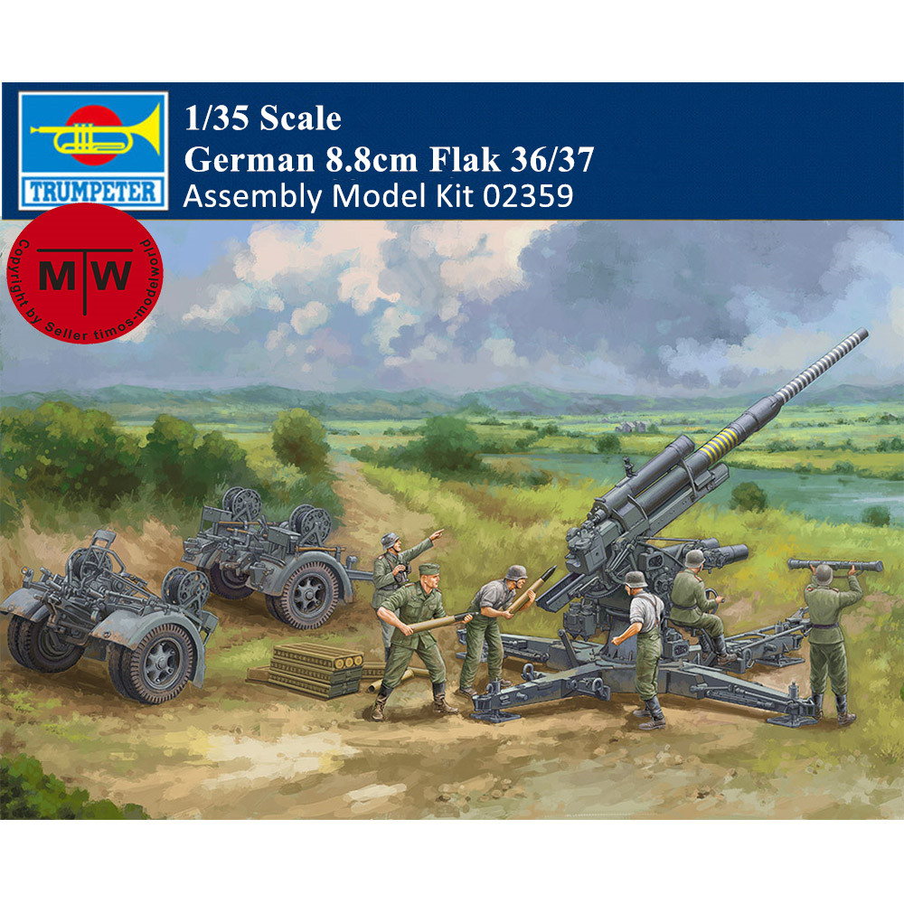 1 x 1/35 Scale German 8.8cm Flak 36/37 Model Kit 02359(need assemble with instructions)