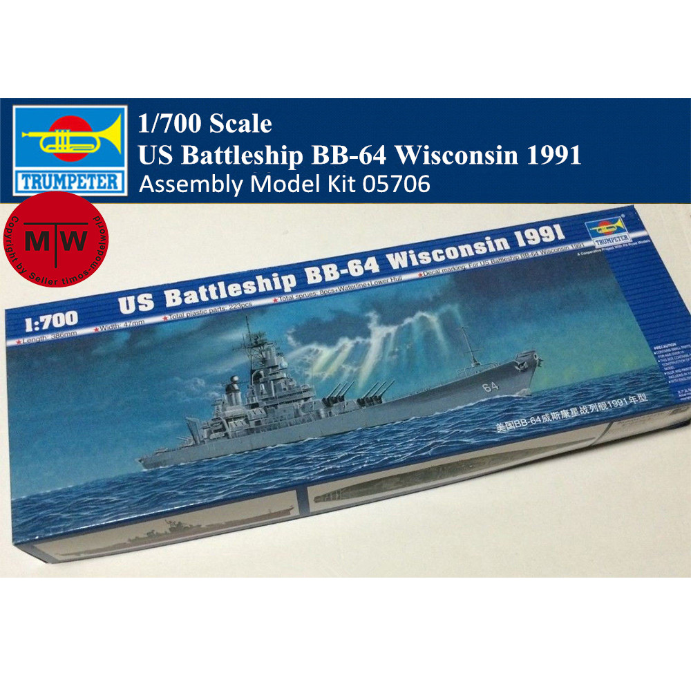 1 x 1/700 Scale US Battleship BB-64 Wisconsin 1991 Model Kit 05706(need assemble,with instructions)
