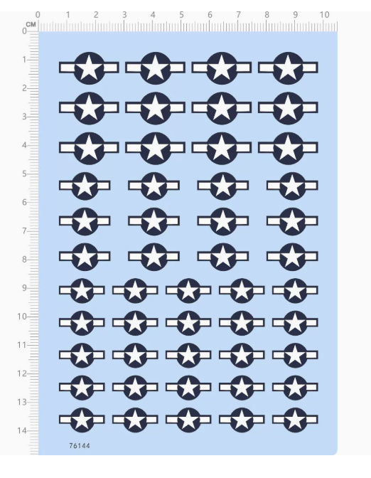 1 x US Military Aircraft Star and Bars Insignia Water Slide Decal for Model Kits 76144