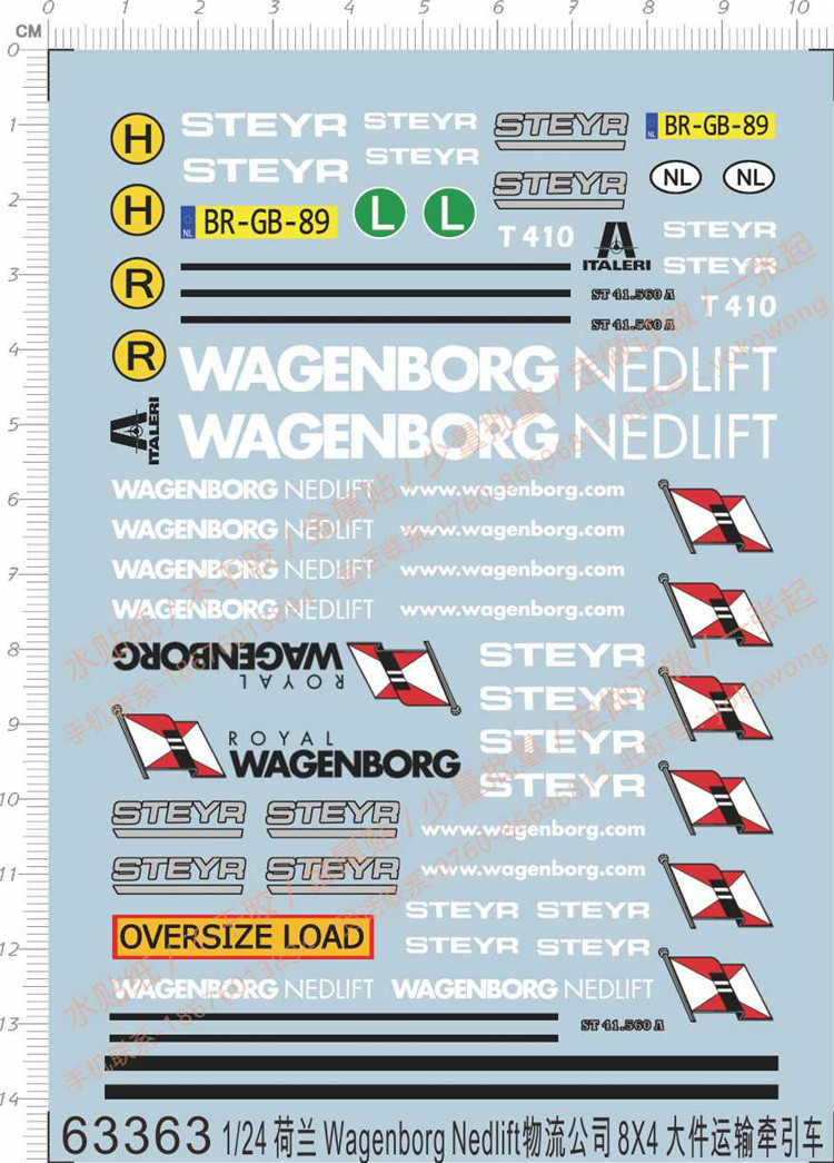 1 x Wagenborg Nedlift Steyr 8X4 Truck Markings Water Slide Decal for Model Kit 63363