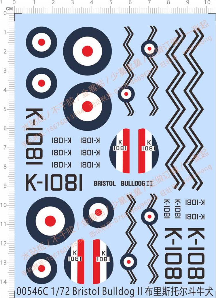 1 x Water Slide Decal for 1/72 Scale Bristol Bulldog II Fighter Model Kit 00546C