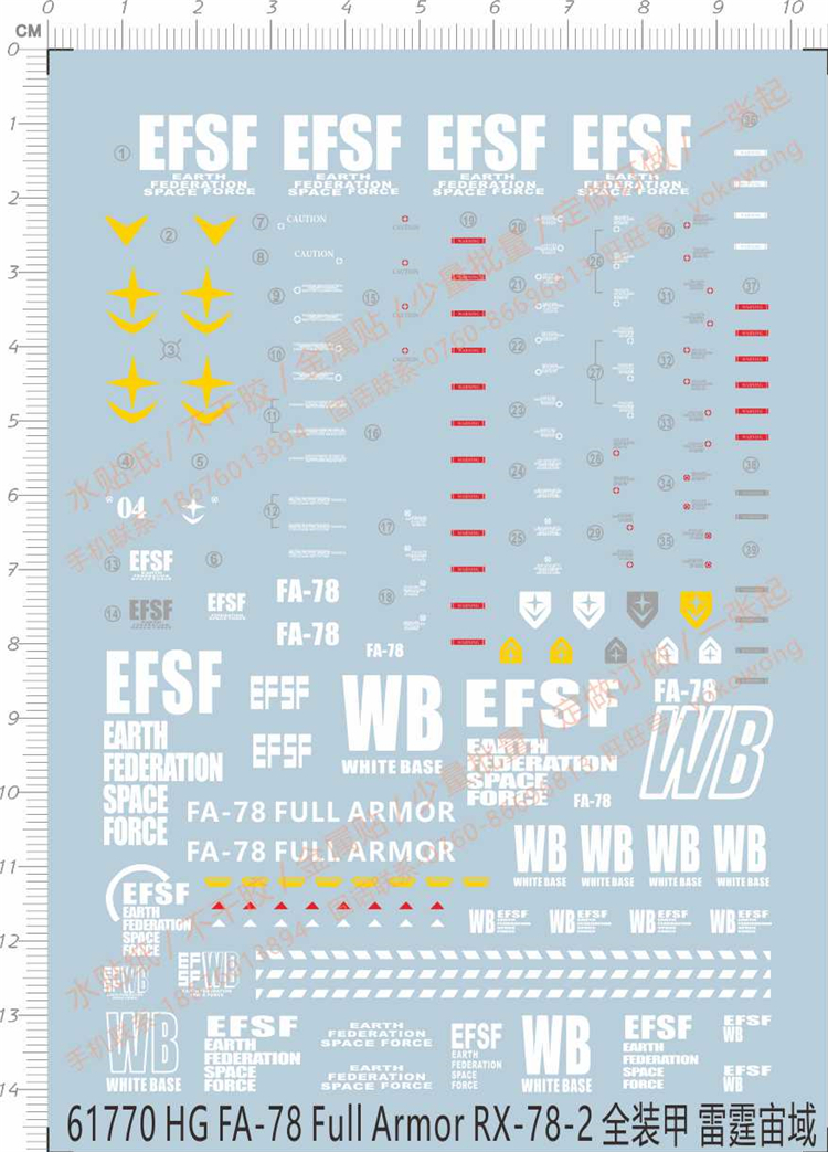 1 x Water Slide Decal for Gundam HG FA-78 Full Armor RX-78-2 GDM Model Kit 61770