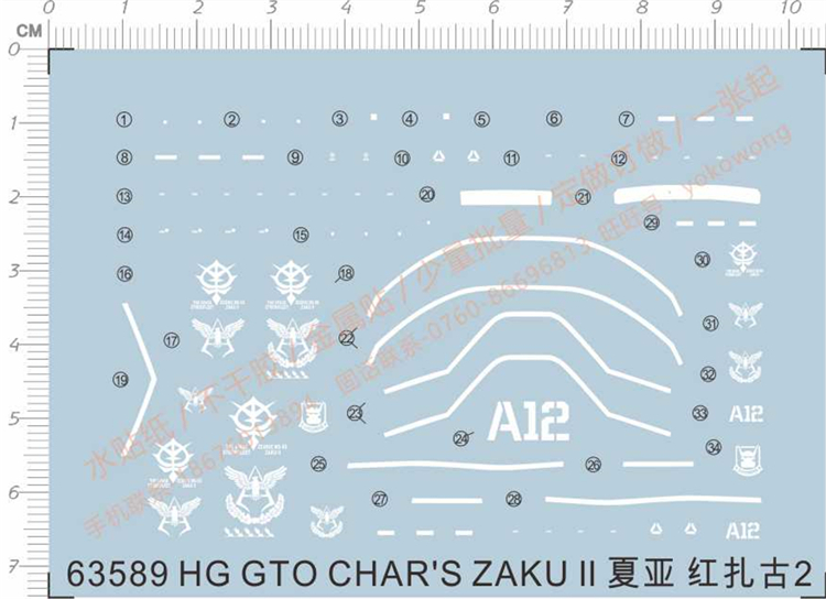 Water Slide Decal for Gundam HG GTO CHAR’S ZAKU II MS-06S GDM Model Kit 63589