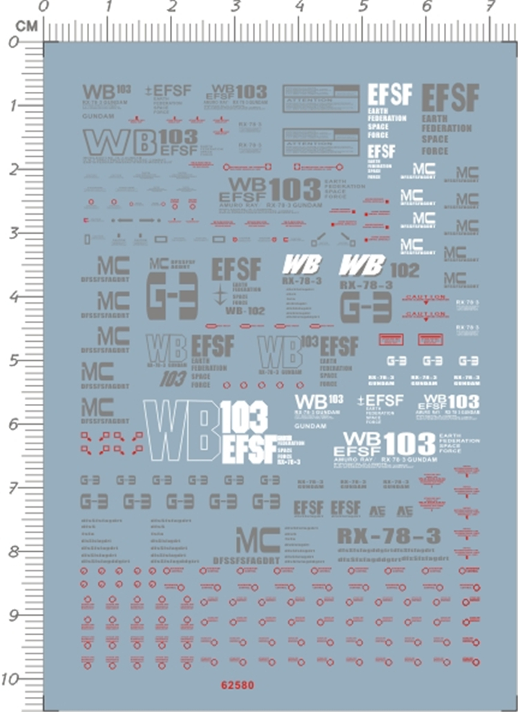 Water Slide Decal for Gundam HG RX-78-3 G3 G-3 GDM Model Kit 62580