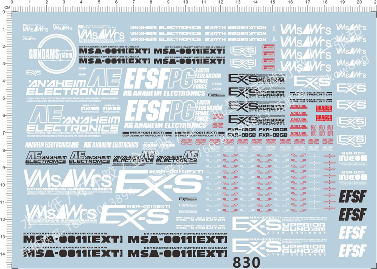 1 x Water Slide Decal for Gundam MG MSA-0011 Ex-S GDM Model Kit 830/830B