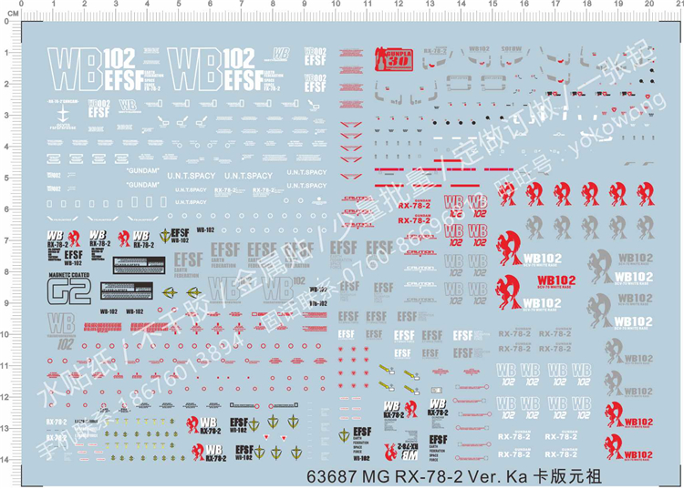 1 x Water Slide Decal for Gundam MG RX-78-2 Ver.Ka GDM Model Kit 63687