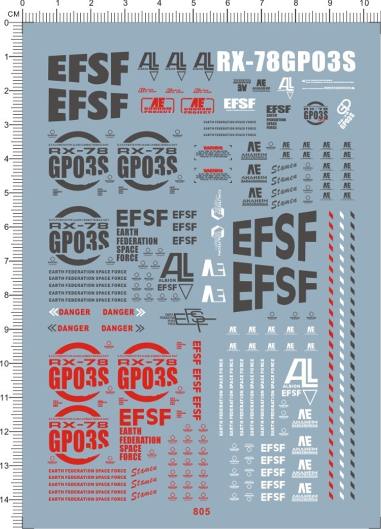 1 x Water Slide Decal for Gundam MG RX-78 GP03S Stamen GDM Model Kit 805