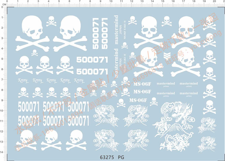 1 x Water Slide Decal for Gundam PG Zaku MS-06F GDM Model Kit 63275