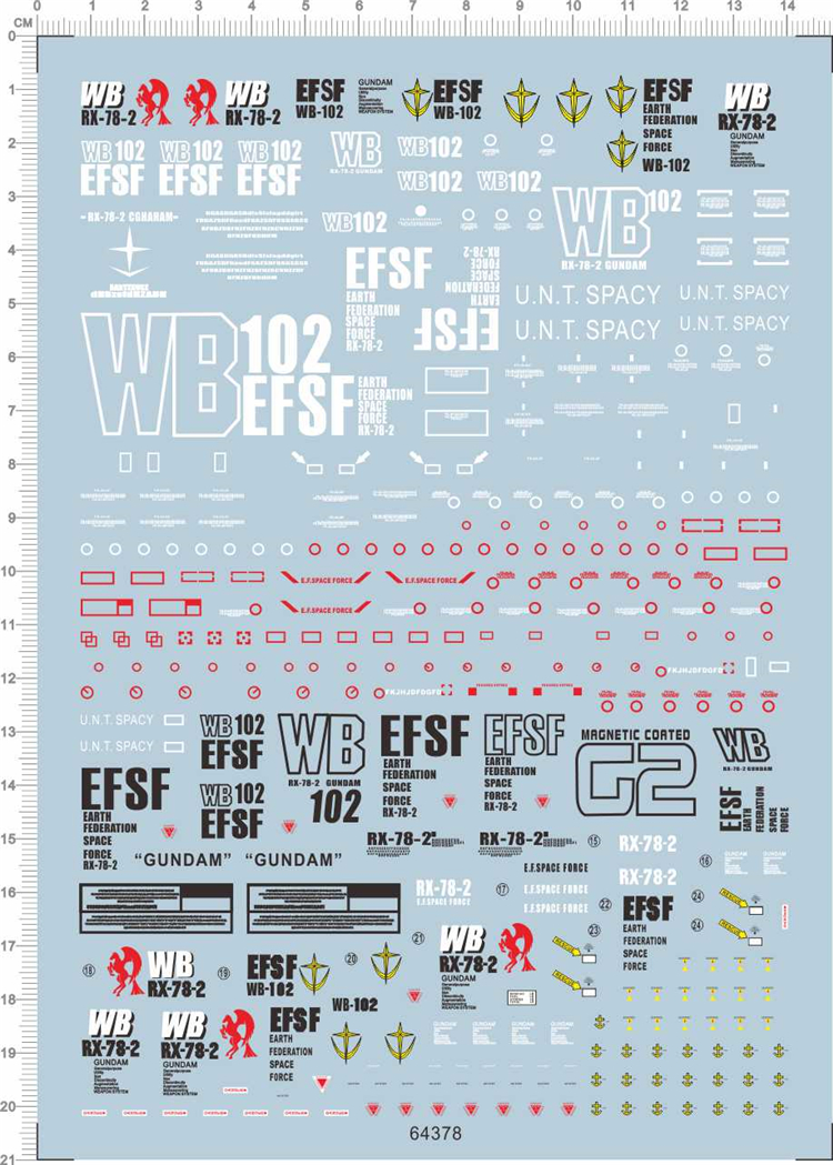 1 x Water Slide Decal for Gundam PG RX-78-2 WB-102 GDM Model Kit 64378/64378B