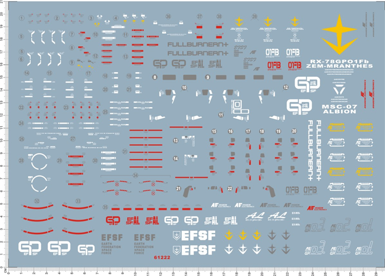 1 x Water Slide Decal for Gundam PG RX-78 GP01FB GP01 FB GDM Model Kit 61222