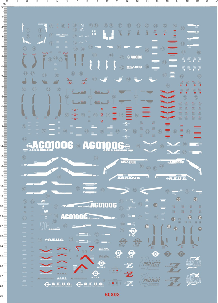 1 x Water Slide Decal for Gundam PG Z Zeta MSZ-006 GDM Model Kit 60803