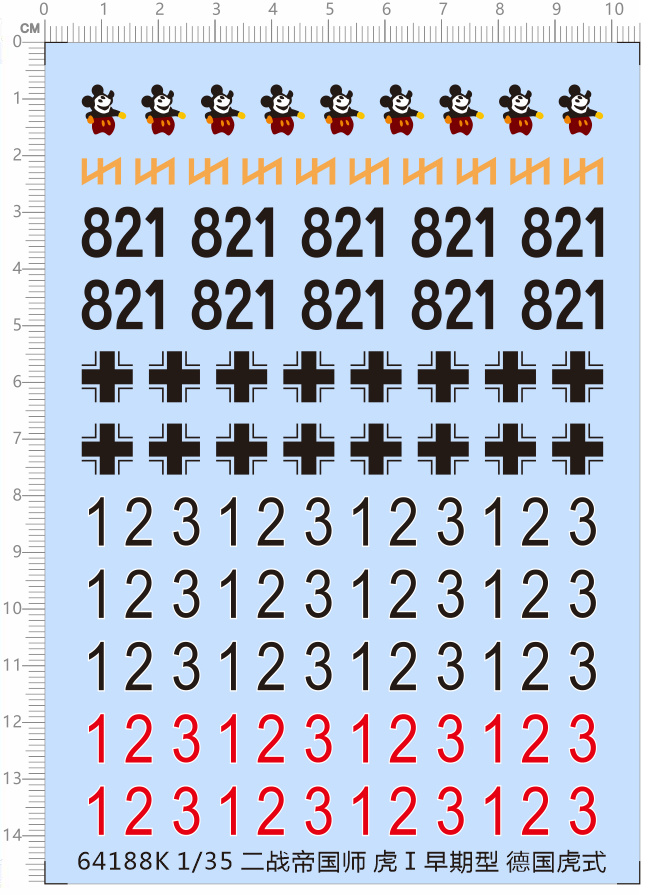 1 x Water Slide Decal Number Marking for 1/35 Scale Tiger Tank Model Kit 64188K