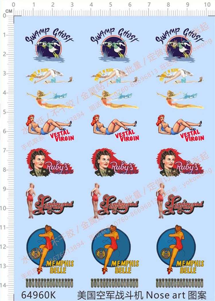 1 x WWII US Airforce Fighter Airplane Nose Art Decal for Aircraft Model Kit 64960K